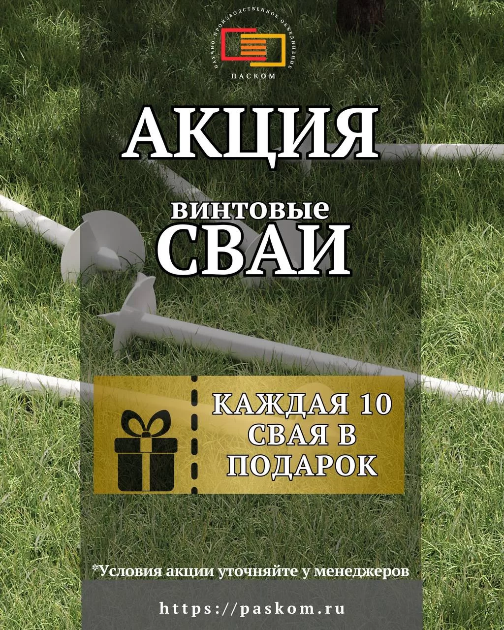 При покупке 9 винтовых свай Вы получаете одну в подарок! Это отличная возможность не только укрепить ваш фундамент, но и сэкономить